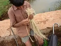 In villages of many parts of India, for example in Maharashtra, this tree provides the leaves that are used either with many pieced together or singly (only in case of a banana leaf) to make a leaf-plate for serving a meal. Up until a century ago, a would-be-son-in-law was tested on his dexterity in making this plate and bowl (used to serve daal, gravy dishes) before being declared acceptable by the father-in-law-to-be.[9]
