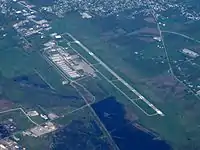 - On 15 May 2018, a small Grumman American AA-1B airplane crashed at the airport shortly after taking off. The aircraft experienced an engine problem after departure and attempted to circle back to the airport, but it landed 100 yards short. The reason for the loss of engine power could not be determined because postaccident examination revealed no evidence of mechanical malfunctions or failures that would have precluded normal operation.[18][19][20][21]