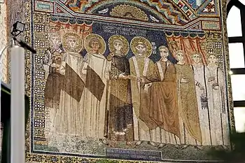 Theodora, the Khazar wife of Justinian II escaped to a nearby monastery with her son and former co-emperor Tiberius. The young boy was holding on to the True Cross when a soldier entered and forced his hand from it. It is said that the soldier then laid the Cross with great respect on the altar. Following this rather pious act, he then dragged the boy outside and beneath the porch of a nearby church, butchered the line of Heraclius into extinction forever.[51]