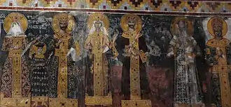 Kings of Georgia and queens consort wearing Byzantine dress. A fresco from the Gelati Monastery.