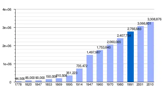 Vertical bar chart demographic of Córdoba Province, Argentina between 1778 and 2010