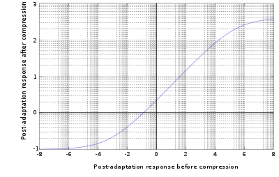 Finally, the response is compressed based on the generalized Michaelis–Menten equation (as depicted aside):[5]