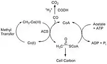 - ↑ Riordan CG (July 2004). "Synthetic chemistry and chemical precedents for understanding the structure and function of acetyl coenzyme A synthase". Journal of Biological Inorganic Chemistry. 9 (5): 542–9. doi:10.1007/s00775-004-0567-7. PMID 15221481. S2CID 6536992.