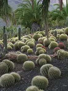A cactus garden is a garden for the cultivation and display with many types of cacti.[2][3] Cacti, due to their unusual appearance for Europeans, attracted the attention of the first European colonizers of Americas and were brought to Europe as ornamental plants already in the 16th century.