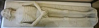 The Cadaver Tomb of Guillaume de Harsigny is a 1394 cadaver monument (transi) now in the Musée d'art et d'archéologie de Laon (Musée de Laon). It is notable as one of the earliest known French transi, and the first to be sculpted in the round (ie fully three dimensional as opposed to carved on coffin lid or stone slab).[1] The original monument contained a tomb chest holding his remains, however this was lost in 1841. Similarly, the effigy had been painted black, this too is lost.