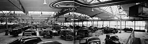 General Motors was looking for a suitable location for an assembly plant in Switzerland in the 1930s.[3] Guido Müller, the then city president of Biel, offered a finished factory and tax exemption for five years.[3] On 2 May 1935, "General Motors Suisse" was founded in Biel/Bienne.[3] The company register derogates from 1 May 1935.[4] The first vehicle was produced on 5 February 1936.[3] Until the outbreak of World War II, about 2,000 vehicles were produced each year.[3]