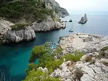 A small beach can be found at the extremity of the calanque.