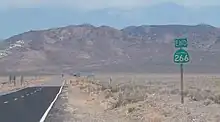 The section of SR 266 from the western terminus to the junction with SR 168 is designated by the California State Legislature as eligible by law for the State Scenic Highway System;[3] but it is not officially designated as a scenic highway by Caltrans.[4] The entire route, consisting of two lanes for two-way traffic, traverses on the flat land in the Fish Lake Valley east of the White Mountains, and it can serve as transportation of agricultural goods between California and Nevada via the route's only junction (SR 168). In the event that SR 168 is closed, SR 266 connects to SR 264, which intersects with U.S. Route 6 (US 6) in order to provide an alternate access to California.[2]