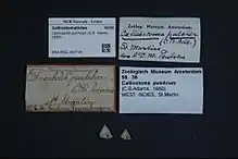 - Adams, C. B. 1850. Descriptions of supposed new species of marine shells, which inhabit Jamaica. Contributions to Conchology 5: 69–75.
