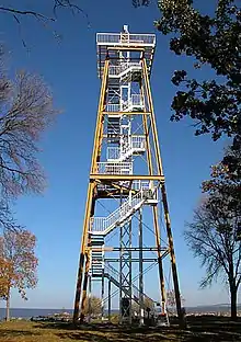The Calumet Harbor lighthouse is a three-story, open-air lighthouse and observation tower located in Calumet Harbor, in the town of Calumet, Wisconsin, approximately one mile west of Pipe, Wisconsin. It is located on the eastern shore of Lake Winnebago, inside the Columbia Park, a Fond du Lac County park. The structure is a steel skeletal tower with two flashing white strobe lights located on top.[1][2]