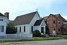 It is an east-facing one-story gable-front frame church with a projecting gabled vestibule. It has a wing extending to the north. It was built in 1900 by carpenters E.S. Donnell and B.B. Baker.[2]