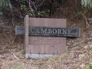 Camborne was developed over a 35-year period from the 1960s, initially by an investment company headed by a Mr Arthur Cornish. It was named after Camborne, Cornwall. Most of its street names are of Cornish origin, but its main street, Pope Street, is named after William George Pope (known as Bob), who was an honoured former resident of the adjoining suburb of Plimmerton.[4]