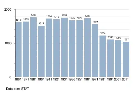- ↑ "Popolazione Residente al 1° Gennaio 2018". Italian National Institute of Statistics. Retrieved 16 March 2019.