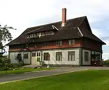 The main building for the museum, the "Dairy Barn", or "Building 88," is a three-storey barn with a gable roof and two side wings.[7] The building is made out of stone, wood shingles, and batten.[7] Originally built in 1887–88, the building was later rebuilt in 1913, after a fire destroyed the original structure.[8] Because of the buildings historical association with dairy farm research, the footprint of the building was designated as a Federal Heritage Building in 1987.[7] The building houses the museum's exhibition spaces, as well as its dairy herd.[8]