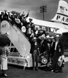 Canada men's national soccer team exiting plane in Mexico City on July 5, 1957