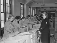 Volunteers from Canadian Red Cross assemble packages for prisoners of war during the Second World War.