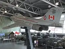 Equipment is organized into several sections, land, air, sea, field artillery, armoured fighting vehicles, cannon or mortar, and tanks.[59] Most of the equipment in the gallery has been restored and cleaned, arranged and organized with museum labels which provide details on the equipment.[60] The museum labels accompanying the pieces are focused primarily on the technical aspects of the equipment.[61] The equipment housed in LeBreton Gallery is among the largest items in the museum's collections and includes a McDonnell CF-101 Voodoo, 19th-century artillery pieces, tanks, and other military vehicles.[26] The majority of the lighter wheeled and tracked transport vehicles on display date back to the Second World War or the Cold War era.[62]