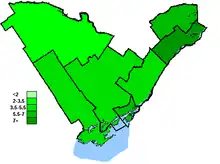 In the 2011 election, the region was affected by the nationwide surge in support for the NDP. Although the NDP failed to win any seats in the area, they increased their popular vote share in all seven of the region's ridings, and won second place in three of the area's ridings.