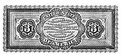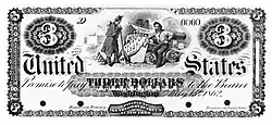 A three dollar bill was proposed two times during the 1860s. A design was engraved for a potential $3 United States Note, and a 1865 law called for a $3 National Bank Note, but neither proposal came to fruition.