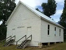 Caney Springs Cumberland Presbyterian Church is a historic church at the junction of Arkansas Highway 289 and Izard County Road 70 (Walter Hall Road), near Sage, Arkansas. It is a modest rectangular Plain Traditional structure set on fieldstone piers and topped by a gabled corrugated metal roof. The interior has a single large room, with plank flooring and flush-boarded walls. The pews, original to the building's 1889 construction, were handcrafted by the congregation. The church is a well-preserved example of a once-common type of church found in the region.[2]