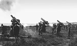 ![]() A Battery of 75/27 A.V. at the test range in Nettuno. | |