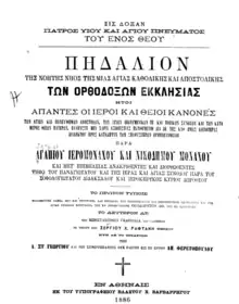 - ↑ Heith-Stade, David (2014). The Rudder of the Church : A Study of the Theory of Canon Law in the Pedalion (thesis/docmono thesis). Lund University.