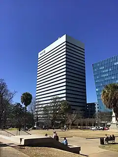 Capitol Center is an office skyscraper in Columbia, South Carolina. At 106.4 m (349 ft), it is the tallest building in South Carolina. The tower has about 1,000 people inside working every week and about 400 offices. A 26-story skyscraper, it was the tallest structure in South Carolina from its completion in December 1987[3] to the completion of the Prysmian Copper Wire Tower in Abbeville in 2009. The tower was built on the site of the former Wade Hampton Hotel which was imploded in July 1985. This modern building exterior is finished in double-paned tinted glass with horizontal bands of anodized aluminum color panels. The 25-story tower was completed in 1987 during a Columbia high-rise building boom, as the AT&T Building. Naming rights have been previously held by Affinity and South Trust Bank. The current signage on the building is held by Truist Bank. During its construction in 1986, gubernatorial candidate Carroll Campbell successfully used the then unfinished structure, whose construction was partially financed by the State of South Carolina, as a symbol for excessive government spending.