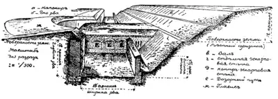 An alternative to the caponier is a counterscarp battery, dug into the outer face of the corner of the ditch, giving a similar field of fire. Reached by a tunnel from within the fort, it does not have the vulnerable roof that the caponier has, but being outside the ditch, is potentially more vulnerable to mining. Both structures may be found in the same fort.