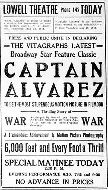 Captain Alvarez is a 1914 Vitagraph's five-reel film, based on a stage play. Written by Marguerite Bertsch, and directed by Rollin S. Sturgeon.