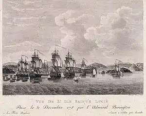 Admiral Samuel Barrington, the British naval commander stationed on the Leeward Islands, joined the newly arrived Commodore Hotham on December 10 on the island of Barbados. Grant's men were not permitted to disembark and spent the next several days aboard their transports. Barrington and Hotham sailed for the French island of St. Lucia on the morning of December 12, with the idea of capturing it and using it as a base for monitoring French activity in the area.