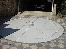 A car turntable or driveway turntable is a rotating platform designed for use by a car; they can be motorized or manually rotated and are usually installed in a driveway or in a garage floor. They rotate a motor vehicle to facilitate its easier or safer egress. Sometimes a local zoning prohibition of vehicles backing onto busy roadways prompts the installation of car turntables.