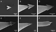 Carbon nanocones have been used to cap ultrafine gold needles. Such needles are widely used in scanning probe microscopy owing to their high chemical stability and electrical conductivity, but their tips are prone to mechanical wear due to the high plasticity of gold. Adding a thin carbon cap mechanically stabilizes the tip without sacrificing its other properties.[9]