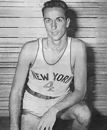 In between those minor league baseball seasons, he also joined the New York Knicks for their 1947–1948 season, effectively playing in two professional sports simultaneously. On December 6, 1947, he set a then NBA single-game scoring record, recording 47 points.[5] Incredibly he pitched one more season in the Yankees organization that following summer, until deciding that basketball was his future.[6]