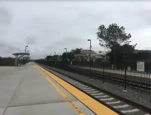 Carlsbad Poinsettia station is a commuter rail station in Carlsbad, California that is on the NCTD COASTER commuter rail line. The station serves the Poinsettia and La Costa communities of Carlsbad, and is the southernmost of the two COASTER stations in Carlsbad, the other being Carlsbad Village station about four miles to the north. It is also located about four miles away from the LEGOLAND California Theme Park and five miles from McClellan-Palomar Airport; there are transit services that are provided for transport to those destinations.