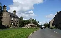 In the centre of Carperby there is a high-stepped cross dated 1674 indicating that Carperby once had a market. The charter for the market was granted in 1305 for weekly markets and fairs on St James' Day in July and St Andrew's Day in November.[5] The Wheatsheaf Hotel was where James Herriot and his bride spent their honeymoon in 1941.[6]