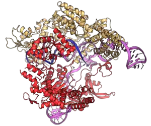 - 1 2 Anders C, Niewoehner O, Duerst A, Jinek M (September 2014). "Structural basis of PAM-dependent target DNA recognition by the Cas9 endonuclease". Nature. 513 (7519): 569–73. Bibcode:2014Natur.513..569A. doi:10.1038/nature13579. PMC 4176945. PMID 25079318.
