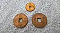 Chinese cash coins with flower (rosette) holes (traditional Chinese: 花穿錢; simplified Chinese: 花穿钱; pinyin: huā chuān qián) are a type of Chinese cash coin with an octagonal hole as opposed to a square one, they have a very long history possibly dating back to the first Ban Liang cash coins cast under the State of Qin or the Han dynasty.[90][91][92][93][94]