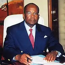 Following the 1990 National Conference in Gabon, Oyé-Mba was appointed Prime Minister of Gabon on 27 April 1990.[3][6][7] In the parliamentary election held later in 1990, he won a seat in the National Assembly from Komo-Mondah Department in Estuaire Province,[3] and following the election he was retained as Prime Minister in November 1990.[3][7] In the December 1993 presidential election, which was won by incumbent President Omar Bongo, Oyé-Mba was Bongo's campaign manager;[3][6] after the election, he resigned on 11 March 1994, but Bongo reappointed him on 13 March, and a new government headed by Oyé-Mba was named on 25 March.[8] Following the signing of an agreement with the opposition later that year, Oyé-Mba and his government resigned on 11 October 1994[9] and were replaced by a new coalition government headed by Paulin Obame-Nguema on 2 November.[1] Oyé-Mba was included in Obame-Nguema's government as Minister of State for Foreign Affairs and Cooperation, and he served in that position until he was moved to the post of Minister of State for Planning, Development Programming and Regional Planning in the government of Prime Minister Jean-François Ntoutoume Emane on 25 January 1999.[3][6]