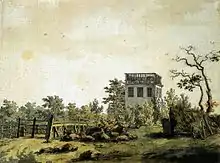 Friedrich's modern revival gained momentum in 1906, when thirty-two of his works were featured in an exhibition in Berlin of Romantic-era art.[68] His landscapes exercised a strong influence on the work of German artist Max Ernst (1891–1976), and as a result other Surrealists came to view Friedrich as a precursor to their movement.[16] In 1934, the Belgian painter René Magritte (1898–1967) paid tribute in his work The Human Condition, which directly echoes motifs from Friedrich's art in its questioning of perception and the role of the viewer.[69]