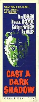 Cast a Dark Shadow is a 1955 British suspense film noir directed by Lewis Gilbert and written by John Cresswell, based on the 1952 play Murder Mistaken by Janet Green. It stars Dirk Bogarde, Margaret Lockwood, Kay Walsh, Kathleen Harrison and Robert Flemyng. The film released on 20 September 1955, distributed by Eros Films Ltd. in the United Kingdom and Distributors Corporation of America in the United States. The story concerns a husband who murders his wife.