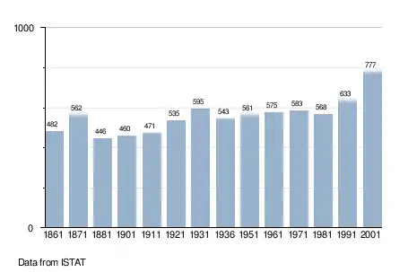 - ↑ "Popolazione Residente al 1° Gennaio 2018". Italian National Institute of Statistics. Retrieved 16 March 2019.