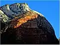 Castle Dome is a 7,054-foot (2,150 m) elevation Navajo Sandstone summit located in Zion National Park, in Washington County of southwest Utah, United States.[2] Castle Dome is situated northwest of Zion Lodge, towering 2,800 feet (850 m) above the lodge and the floor of Zion Canyon. It is set on the west side of the North Fork Virgin River which drains precipitation runoff from this mountain. It is wedged between Behunin Canyon and Heaps Canyon, with the popular Emerald Pools set at the southeast foot of this mountain. Its neighbors include Mount Majestic, Cathedral Mountain, The Great White Throne, Red Arch Mountain, Mountain of the Sun, and Lady Mountain. This feature's name was officially adopted in 1934 by the U.S. Board on Geographic Names.[2]