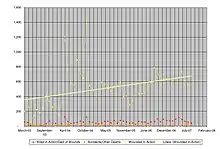 Graph of monthly wounded in action of U.S. military personnel in Iraq.[56]