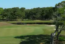 Golf Course. The 18 hole, par 72 course at the Oak Island Golf Club is open to the public. The 6,720 yard course layout has 37 bunkers and water in play on 11 different holes with five sets of tees (back tees are course rated at 73.1 with a slope of 139). The course features ultradwarf TifEagle greens [22] and Bermuda tees/fairways/rough while Long Leaf Pines, Live Oaks and Yaupon Holly trees border most every fairway. George Cobb, co-designer of Augusta National's par 3 course, is the architect. A full practice facility is available to the public which includes a putting green, sand traps and a driving range.[23]