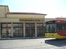 The nearby Catanzaro Lido railway station (FC), operated by the Ferrovie della Calabria (FC),[1] is a terminus of a metre gauge line from Cosenza, and there is convenient interchange between the two stations.