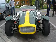Caterham Cars is a British manufacturer of specialist lightweight sports cars established in Caterham, England, with their headquarters in Dartford, England. Their current model, the Caterham 7 (or Seven), originally launched in 1973, is a direct evolution of the Series 3 Lotus Seven designed by Colin Chapman. In the 1990s the company made the Caterham 21, a two-seater soft top alternative to the MGF and Lotus Elise, (which both sold many more units). A track-only car, the SP/300.R, a joint project with Lola was released for customer testing in 2010 and was scheduled for release in 2013.