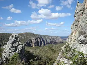 The Catimbau Valley (Portuguese: Vale do Catimbau) is Brazil's 2nd largest archaeological site. Among its natural attractions there are beautiful canyons, over 2,000 caves, and 28 registered areas with pre-historical cave paintings. One of the sites, Pedra da Concha (Shell Rock), displays cave art dating at least 6,000 years ago.[3] The park has been designated a national archaeological heritage site by the National Institute of Historic and Artistic Heritage (IPHAN).[4]