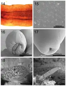 - ↑ Foata, J.; Quilichini, Y.; Justine, J.-L.; Bray, R.A.; Marchand, B. (2012). "Ultrastructural study of spermiogenesis and the spermatozoon of Cavisoma magnum (Southwell, 1927) (Acanthocephala, Palaeacanthocephala, Cavisomidae), from Siganus lineatus (Pisces, Teleostei, Siganidae) (Valenciennes, 1835) in New Caledonia". Micron. 43 (2–3): 141–149. doi:10.1016/j.micron.2011.10.022. ISSN 0968-4328. PMID 22100318.