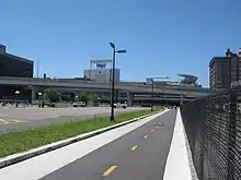 Cedar Lake Trail is a 4.3-mile (6.9 km), shared-use path in the U.S. state of Minnesota, from downtown Minneapolis to the neighboring suburb of St. Louis Park. The trail begins at its eastern trailhead in downtown Minneapolis (44°59′11″N 93°16′01″W / 44.98645°N 93.26694°W / 44.98645; -93.26694 (Cedar Lake Trail, eastern terminus)) and continues west to Minnesota State Highway 100 in St. Louis Park (44°57′43″N 93°20′36″W / 44.96208°N 93.34335°W / 44.96208; -93.34335 (Cedar Lake Trail, western terminus)).[1] At the trail's west end, a paved path continues for another 4.2 miles (6.8 km) through St. Louis Park to Hopkins[2] under the former name of Hutchinson Spur Trail ("Hutch Spur"), but known as North Cedar Lake Regional Trail since 2009. In 2019, large portions of the Cedar Lake Trail were closed due to construction of the Southwest LRT extension with expected reopening in 2021 or 2022.[3]