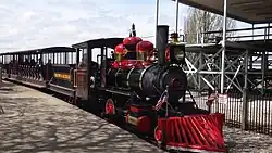 There are currently five steam locomotives on the railroad, with four of them in operating condition, #44 "Judy K.", #22 "Myron H.", #4 "George R.", and #1 "G.A. Boeckling".[4] Myron H. or Judy K. are the primary locomotives used on a daily basis. Either locomotive can be used as the second engine for two train operations. The G.A. Boeckling and the George R. are available as back ups if their services are needed. The engines used at Cedar Point are all historic locomotives that were built for a variety of uses before ending up at the park. All four of the operating engines fire on coal as their fuel source.